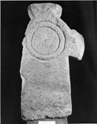 The shape of the head, with very short arms and a large circular centre which almost gives the appearance of a plate-head, seems to be late. It could in fact be post-Conquest, and it is impossible to say whether it was a grave-marker or gable finial. The lower portion of the shaft seems to have been dressed back as though to fit a socket. The origin of the decoration seems to be the type of cross with bossed centre surrounded by a heavy roll moulding which is common in the region. For instance Tynemouth 6 and Durham 4 have roll mouldings surrounding a slightly sunken centre. This could have been an intermediate stage towards the flat type of ornament found here.
