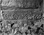Only half of one face, edged by a fine roll moulding, is visible. A panel of changing interlace, consisting of two registers of a ring-knot pattern, then a pattern C, a pattern A, and a pattern D loop (Adcock 1974, pl. 167A).