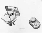 A (broad): All comment depends on drawing in Gage (1836). The stone is described as being in five pieces although only four are shown on the drawing. It could have been of a round or half-round form. It appears to have a fine raised outer band, and a plain outlined border enclosing a narrow pelleted band enclosed in double outlines. This is cut by the terminals of a cross, type G1, with a dot centre surrounded by three irregular circles. The cross-arm is incised with a median line and in the centre is a wide circular hole surrounded by a pelleted band. The quadrants of the cross appear to have contained Latin inscriptions in Anglo-Saxon capitals: