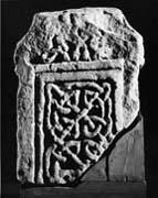 C (broad): The cross-head is edged with a wide flat-band moulding and is filled with irregular plait-work with V-bends. Below, two panels are contained in inner roll mouldings (i) A simple four-strand plain plait. (ii) contains a curved feature with double incised outlines. This could be a coiled ribbon animal or it could be the top of an arch as shown by Collingwood (1925, fig. 15).