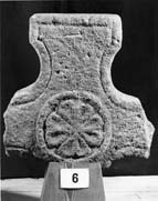 This cross type is distinctive of the early Hexham school (Introduction, p. 26). The rosette centre may have been inspired by the more elaborate rosette of the panel, no. 22. Such plain cross-heads which could be inscribed or possibly painted with names seem to be a distinctive feature of monastic sites (see Carlisle: Collingwood 1927, figs. 72, 105, which have inscriptions and rosette; and Whitby: Peers and Radford 1943, figs. 6-7).