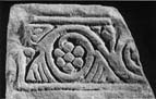 This base is seen by Collingwood (1925, 813, fig. 12) as the base for 4, but, as I have pointed out elsewhere (Cramp 1974, 132-3), the only linking motif is the form of the berry bunch which is also found on 3. Nevertheless the style of cutting, by outlining with a punch rather than carving with a chisel, links 12 and 4. They should be seen as of the same date if not as part of the same monument. The leaves on this piece are very unusual in Hexham work and indeed in northern sculpture as a whole. The split leaf can be paralleled, however, on the tree-scroll from Northallerton, Yorkshire (Cramp 1974, pl. 22A). The triangular leaf with double-outlined centre is more typical of Wessex and the midlands, although such triangular leaves are found on a ninth-century shaft at Ilkley, Yorkshire.