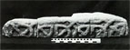 ?B (long): Practically complete in length with worn flat-band mouldings. The plait can be reconstructed as an eight-cord pattern composed of two registers of pattern C and two differing terminals, the one on the left with pattern A units, the one on the right with simple pattern E. The strands are well modelled but widely spaced.