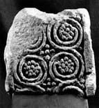 The linked scroll is not like any other at Jarrow, but there is some resemblance to Nunnykirk. The scroll on the narrow face with its split stem and tendrils is, however, closely paralleled by 22, as is also the stone type. Similar split stems and curling tendrils can be found in the north-west at centres such as Lancaster, Lowther and Kendal; these also have loose berries within the scroll. Escomb 2 could have had a similar scroll, but very little survives for comparison.