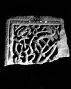 This is an important fragment since it links the motifs and style of the architectural fragments 19 and 20 with cross sculpture. The deep bold carving and the details of the plant-scrolls are identical with those of the friezes, and the composition, with two small squirrel-like creatures, is comparable with Bewcastle, Ruthwell and Edlingham (see Introduction, p. 16). This could have been part of a similarly large cross. Its find-spot near the bridge, when considered in relation to excavated evidence from the site, suggests that it was situated on the eastern perimeter of the monastery, either in the lay burial-ground or at the entrance from the southern overland route.