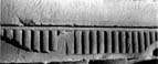 A (long): Part of a frieze with a deep plain band at the top, a sharply cut narrow groove below, outlining twenty-two closely packed straight tubular balusters supported on a narrow flat-band moulding. There is evidence of fine tooling of a 1 mm point above the baluster frieze.