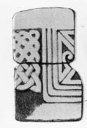 B: Part of an interlace panel, with zoomorphic or foliate terminals, or possibly part of a plant-scroll.