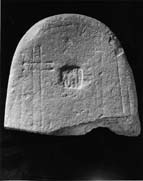 This simple memorial may be either apprentice work or later than those with a central cross. The sinking in the centre might have contained a decorative stone setting.