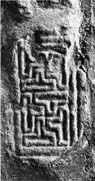 B (narrow): The end of a cross-arm edged with double roll mouldings and enclosing a T-pattern relief design (Allen 1903, no. 921). This head could fit shaft 5.