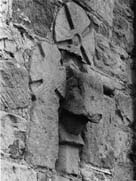 The shape of the cross-head is not determinable but the arm is supported by a ring, type 1. The arms and shaft appear to be absolutely plain with no edge mouldings. The head and shaft are carved in one block with the lower vertical arm projecting at a sharp angle from the shaft.