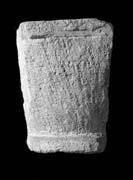 Capital, cut back to a straight edge on both sides for reuse in pigeon house. The capital has the remains of a projecting moulding at one side along the top, but most of this moulding is now only defined by an inscribed line. The flat-faced, wider moulding along the bottom projects 1.6 cm (0.6 in) from the face. The face of the capital curves in slightly towards the bottom moulding. The front face is undecorated.