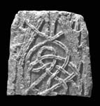 C (broad): Badly damaged, but the remains of irregular, median-incised interlace survive in what may be two blocks either side of a centre line.