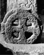 Cross-head, probably type A9, with circle, type 3, and outer narrower circle. The decoration of the circle is bordered by a roll moulding.