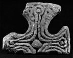 Possibly linked to the spiral-scroll school, with which it shares a taste for a combination of encircled boss on one face and a cruciform head-motif on the other.