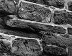 The one visible face carries the worn traces of a step pattern, each unit carrying a central incised line. No border is visible.