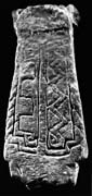This is rustic work and need not be late. Its repertoire of meander and straight line patterns can be found on tenth-century monuments. Its form is unusual: it stood in a socket and was very short. The shape of the bottom of the panel is suggested by the tenon.