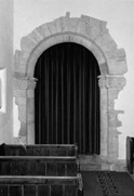 The tower arch is of square section with soffit shafts carried round the head of the arch as a soffit roll. At each side the soffit shaft and roll are separated by a narrow abacus supported by a capital. The arch head and jambs are in turn separated by narrow recessed abaci below which are imposts flanking the capital and of similar height. These stand slightly proud of the jambs and are separated from them by narrow roll mouldings. At each side the abaci and imposts are returned along the east and west walls.