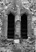 In situ on the angle shafts of the pair of triangular-headed windows on the north side of the tower at first floor level