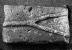 A (top): A half-round median moulding bifurcates half-way along the surviving length. The bifurcations terminate on the narrow end, near the corners.