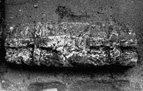 The whole of the nave walling at Stedham church appears to have belonged to the twelfth century, with changes to the fenestration being the only later alterations. It is likely that this cover was reused in the primary phase of building, as were those reused in the nave foundations. The use of crosses at both ends is paralleled on Steyning 1 (Ill. 249), and it is likely that the type of cover, decorated with a median ridge crossed near either end, ultimately derive from this type. Examples of the derived form are known from Chithurst, near-by (no. 2; Ill. 221), and probably also from this site (no. 2; Ill. 239).