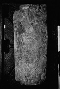 Grave-cover, tapering towards the foot. The upper left-hand corner has been carefully cut away, and the lower left-hand corner is roughly broken.