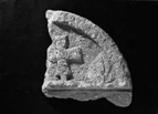 This is the right-hand half of the upper, semicircular part of what was probably a grave-marker. Only one face is carved.