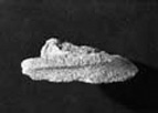 A flat, horizontal moulding, 1 cm wide, forms part of a curve with a large diameter. Below, there is a concave moulding over an expanding slope; above, there are traces of what may be a twisted colonette, c. 7 cm in diameter, with another element coming in from the left.
