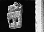 Measurements: H. 12.5 > 11 cm (4.9 > 4.3 in); W. 7 > 4.5 cm (2.8 > 1.8 in); D. 6.5 > 0.5 cm (2.6 > 0.2 in)