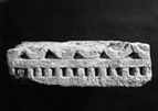 A: This is the longest run of the border or string seen on Winchester (Old Minster) nos. 47–8 and, with variations, on nos. 44 and perhaps nos. 37 and 45–6. Two horizontal elements have survived on the present carving. The central element consists of the lower parts of the circles formed by the interweaving loops of two ribbons of rectangular section. Below there is a dentil pattern c. 7.5 cm wide with dentils 3 cm high formed by cutting rectangular slots, 1 cm wide, with angled bottoms.