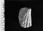 The relief is 4 cm deep with a blank, well finished, slightly concave face to the right. Here a scar indicates the start of the next decorative element. On the front and turning into the right there is a cluster of four alternately twisted bands (Z-S-Z-S) spreading from 1.4 cm to a total width of 4.4 cm., each band widening towards the bottom. On the left the relief is c. 1.6 cm deep, and a new decorative element starts at the point where the stone breaks off.
