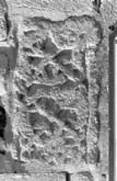 A (broad): There is a narrow plain relief border along the lower edge, the upper edge being heavily damaged. The face is decorated with a heavily-damaged pair of ribbon animals whose bodies curve in from either end and meet towards its centre. They are enmeshed in interlace. The body of the left-hand animal is partially pelleted.
