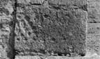 Stone type: Yellowish grey (10YR 8/1–2) shelly oolitic limestone, with planar more shelly bands weathering out as ribs; the stone surface is a calcite honeycomb of vacated 0.3 to 0.5mm oolith sockets in the less shelly bands. Barnack Rag type, Upper Lincolnshire Limestone, Inferior Oolite Group