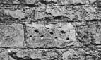 Stones 10a and 10b. Two fragments of interlace now represented only by the pattern of holes representing the original interstices. It is not possible to judge what patterns are represented, but 10b preserves indications of an angle moulding of uncertain type.