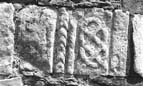 The closest and most convincing analogy to the asymmetrical decoration of this monument is the side panels of the large grave-covers of mid-Kesteven type (see discussion in Chapter V and Fig. 9). On that analogy, stones 3a–d would form parts of one side panel of a chest-like cover and 3e–f parts of the opposite side, the monument having quite typically been split for reuse lengthwise as well as across. The broader plain border, as on that monument type, would be the plinth or lower edge of the cover, the decoration should therefore be viewed as horizontal, and the taper that both sides exhibit is typical of the type.