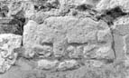A small fragment from the border of a much larger panel. One edge is preserved, on which is a roll with scarcely detectable cable moulding. Inside this border is a run of step decoration type 1 (Cramp 1991, fig. 27).
