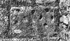 Stone 2a. A fragment from a block originally decorated with interlace in low relief, although the pattern is now only understandable through the holes representing the interstices. The run of interlace represented appears to have been of four strands and included either free rings or figure-of-eight motifs (possibly simple pattern F). The interlace is offset within the present stone, but this may be due to recutting of the block.