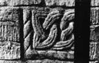 Stone 1c. A fragment which seems to incorporate a whole panel of interlace in low relief framed by a cable-moulded border at one end, beyond which is a second, unmoulded border, and borders of unknown type on the remaining three sides. The interlace itself is motif type vi (Fig. 10) and has a single incised medial line.