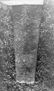 A (top): A centrally placed cross with a stepped base and a floreate cross-head (cf. Butler 1964, fig. 4C). The centre of the shaft is decorated with a lozenge, the shape of which is repeated in two incised lines within the raised area.
