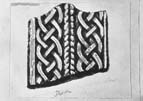 A (top): The Ross manuscript drawing (Ill. 353) shows the decorated upper surface of what appears to be a section from the centre of a grave-cover of no great depth. The stone has plain borders along two opposed edges: the ends are irregularly broken. The decorated area is divided equally in two by a central rib of double-cabled form, and the two narrow fields are filled with four-strand plait.
