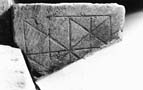 C (broad, presently facing downward): This has lost its original border as the edge has been given a neat chamfer, probably when it was reset in its present position. Within, there is a diagonal grid superimposed on an incised rectangular cross (type A1). The result is that the diagonals fill the upper two interstices above the cross-arms.