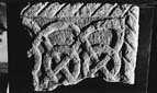 This is one of the interlace covers of Lindsey type discussed in Chapter V. It belongs to the sub-group (b) distinguished by its single cable border (Table 6). It is distinctive in the way its lines of knots touch instead of leaving a clear reserved space between as is the norm for the type. The unit width of the figure-of-eight is as standard but the overall width of the slab at 46 cm (18 in) was a little below the norm of the cover type. This suggests the adaptation of a very standard pattern to a stone slab marginally smaller than required.