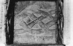 The stone is decorated in low relief on its only visible face with a run of four-strand plait. There are broad, plain borders along either edge. An impression of a very slight curvature on this face cannot be properly assessed.