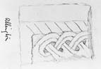 Stone 1b is only known from a drawing (Ill. 383) in the Baldwin Brown archive at Edinburgh University Library (MS Gen. 1922/194). It shows a block decorated with a small scale three-strand plait, with incised medial line, set in a panel bordered on one side by a cable moulding and on another by an undecorated fillet. The style of interlace seems to match that on 1a exactly and it can be reconstructed in several locations within the same grave-cover.