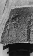B (narrow): This face has been recut to be an element in a run of chevron moulding formed from a sequence of roll mouldings and fillets. It is badly damaged, though it clearly represents a recutting of the face.