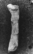 A (broad): A small fragment from a much larger monument. The single visible face appears to show two arms of a small cross of type A1 which are surrounded by a pattern of interlace. Although almost illegible, the interlace appears to have formed a grid which terminates against the cross. The pattern could be resolved as a symmetrical run to either side of the cross-arm, but the fragment is too damaged for certain reconstruction.