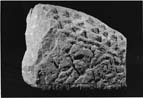 A (long): Below the ridge are three rows of type 2c tegulae, the spaces between them deeply cut. Beneath the eaves at the narrow end is a scroll. In the centre is a large star-like motif with rays radiating clockwise. Between the motifs is a filler. The side is perpendicular and plain at the base.