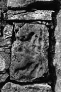 Edge mouldings are lost. One well-modelled profile quadruped sits above another. The upper animal has lost its head and forelegs. The lower one is very worn.