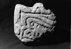 Possibly part of a wheel-head, as there is the stump of a ring standing proud from one edge. Carving survives on one face only.