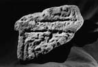 C (broad) : The edge moulding is broad and flat, and turns into a transverse moulding at the top. The panel in the lower limb of the cross retains a box-point of very defaced interlace. The transverse border is very broad and all below it is lost.