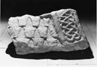 A (long) : Below the ridge position are three rows of type 2b tegulae. At the right-hand end, in the usual position for an end-beast, is a panel framed in a roll moulding containing loosely woven closed circuit interlace: five stages of four-cord plait. The strand is modelled.